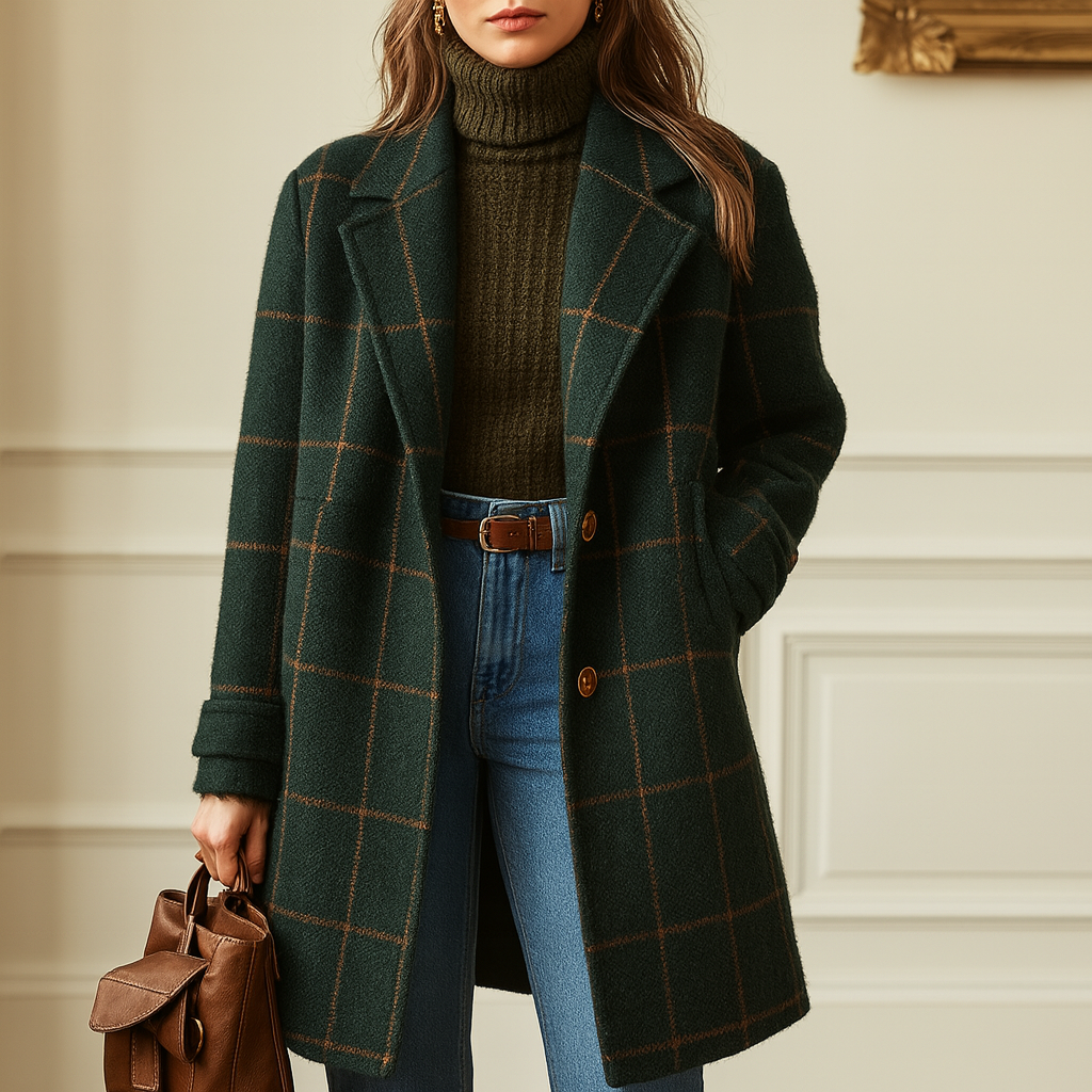 Its refined check pattern and lapel collar add a touch of understated luxury, that ‘carefully elegant’ confidence every woman deserves.