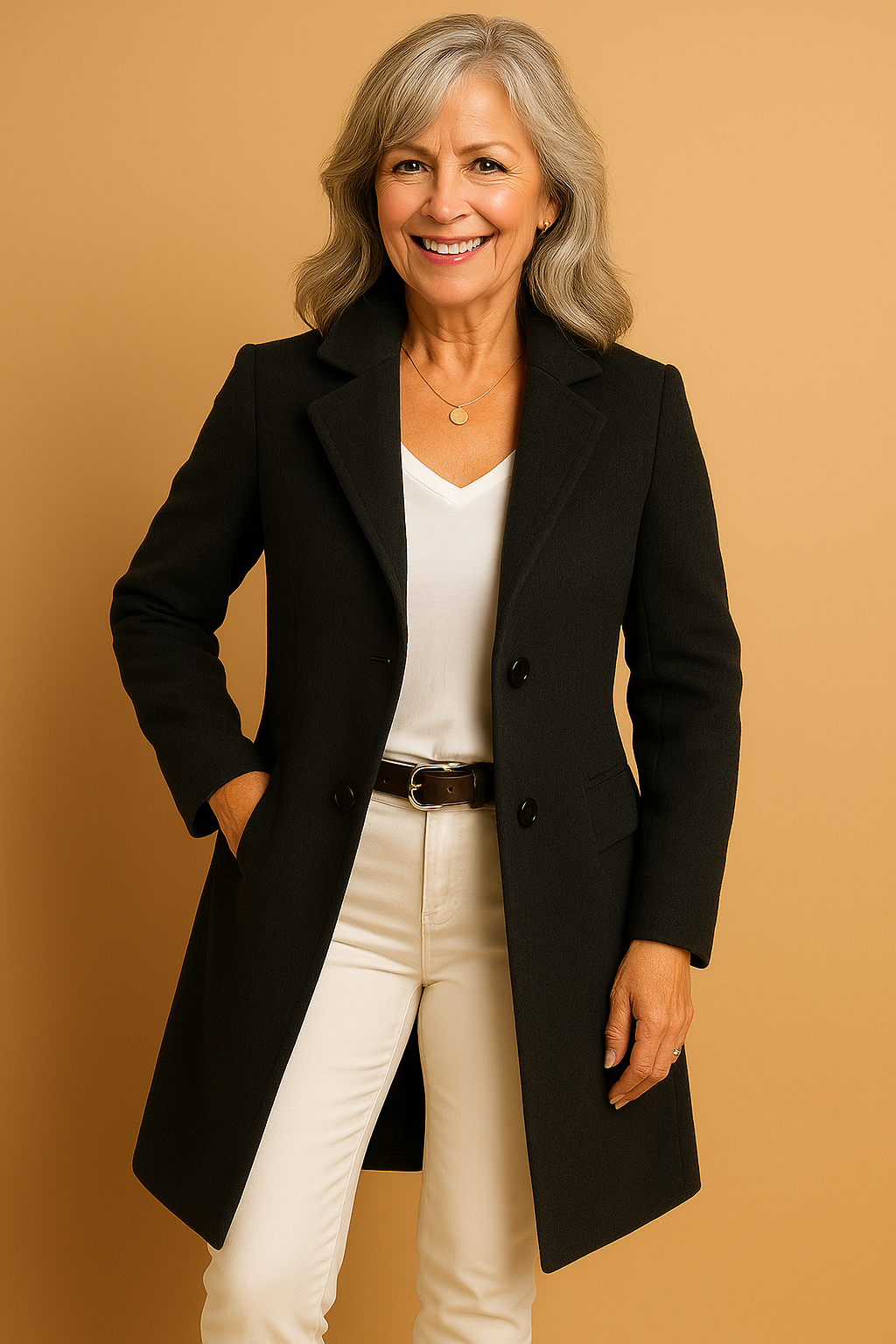 The Mary coat is a stylish choice for the modern woman. Made from a high-quality wool blend, this coat offers warmth and a polished look. The clean lines and classic lapels make it suitable for both business occasions and a smart casual look.